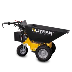 Cette brouette électrique à 4 roues peut transporter jusqu’à 300kg sur sol plat. Sa charge utile peut varier en fonction du type de sol et du degré de pente car il est possible de déplacer des charges lourdes dans une pente allant jusqu’à 20%. Ses batteries AGM sans entretien lui offre une autonomie au minimum d’une journée de travail.