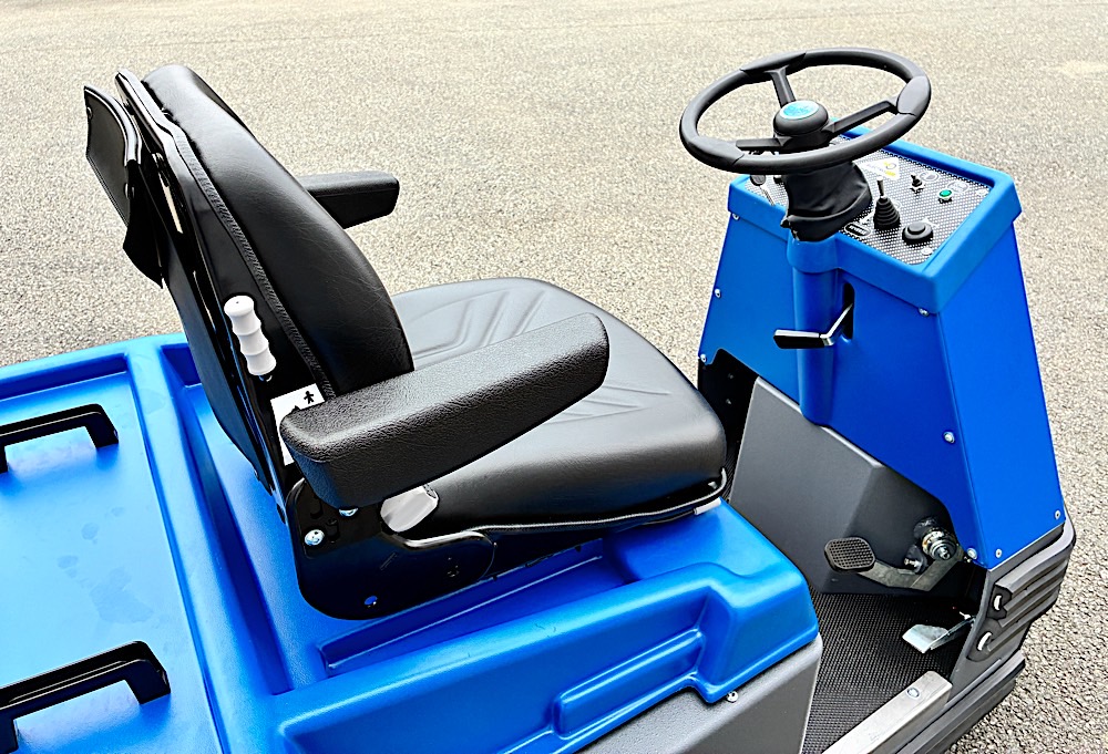 Le SX060 AC est un tracteur électrique robuste, agile et rapide qui permet à l’opérateur/pilote embarqué de tracter jusqu’à 6000 kg en toute sécurité. L’opérateur dispose d’un poste de conduite confortable avec un siège et un volant réglables. Le tracteur dispose de commandes supplémentaires déportées sur la face arrière permettant de simplifier la phase d’amarrage de la charge remorquée. Les larges pare chocs renforcés complète un tableau qui respire déjà la solidité et la fiabilité.